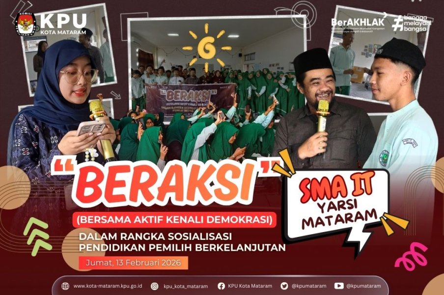 #temanpemilih, KPU Kota Mataram kembali menggelar program Bersama Aktif Kenali Demokrasi (BERAKSI), sebuah inisiatif Sosialisasi dan Pendidikan Pemilih Berkelanjutan di SMA IT Yarsi Mataram pada Jumat (13/2/2026). Kegiatan ini menyasar para pemilih pemula yang akan segera menjadi pemegang hak suara dalam kontestasi demokrasi mendatang. Urgensi program ini terletak pada pentingnya membekali anak muda dengan pemahaman yang benar tentang alur dan nilai demokrasi. Dengan literasi politik yang memadai, diharapkan para siswa tidak hanya menjadi pemilih yang pasif, tetapi mampu menjadi penggerak perubahan yang cerdas di lingkungannya. Hadir sebagai narasumber utama, Ketua Divisi Hukum dan Pengawasan KPU Kota Mataram, Achmad Naufal Rochmatulloh, yang memaparkan materi dengan gaya komunikatif. Turut mendampingi Sekretaris KPU Kota Mataram, Kasubbag SDM beserta jajaran Subbagian SDM. Untuk mengukur efektivitas sosialisasi, tim sub bagian SDM yang dipandu oleh Nabilah Assa'diyah Tisya menerapkan metode pre-test dan post-test. Melalui instrumen ini, KPU Kota Mataram dapat memetakan sejauh mana pemahaman siswa meningkat setelah mendapatkan materi, sehingga pendidikan pemilih ke depan dapat terus dioptimalkan. #kpumelayani #kpukotamataram ....