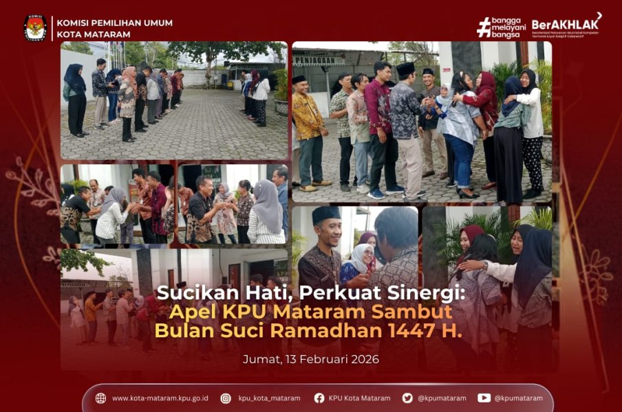 #temanpemilih, Sekretaris KPU Kota Mataram, Lalu Agus Suhardiman, memimpin Apel Terakhir menjelang Bulan Suci Ramadhan di halaman kantor KPU Kota Mataram, Jumat (13/2/2026). Momentum ini diikuti secara khidmat oleh seluruh Aparatur Sipil Negara (ASN). Apel ini untuk mempererat soliditas tim melalui tradisi saling memaafkan. Pembersihan diri secara spiritual agar seluruh personel dapat menjalankan ibadah puasa sekaligus tugas-tugas kelembagaan dengan energi positif. Dalam arahannya, pembina apel menekankan pentingnya memasuki bulan Ramadhan dengan hati yang tulus dan bersih. Beliau berharap suasana kerja yang harmonis dan kondisi fisik yang prima dapat mendukung setiap pegawai dalam menyelesaikan ibadah puasa secara sempurna tanpa mengabaikan kualitas pelayanan. Acara diakhiri dengan sesi saling bermaaf-maafan antar seluruh jajaran sekretariat. Melalui semangat kebersamaan ini, semoga kita dapat menjalankan Puasa Ramadhan dalam keadaan sehat walafiat, penuh kekuatan, sehingga dapat menjalankan ibadah puasa ramadhan dengan sempurna. #kpumelayani #kpukotamataram ....