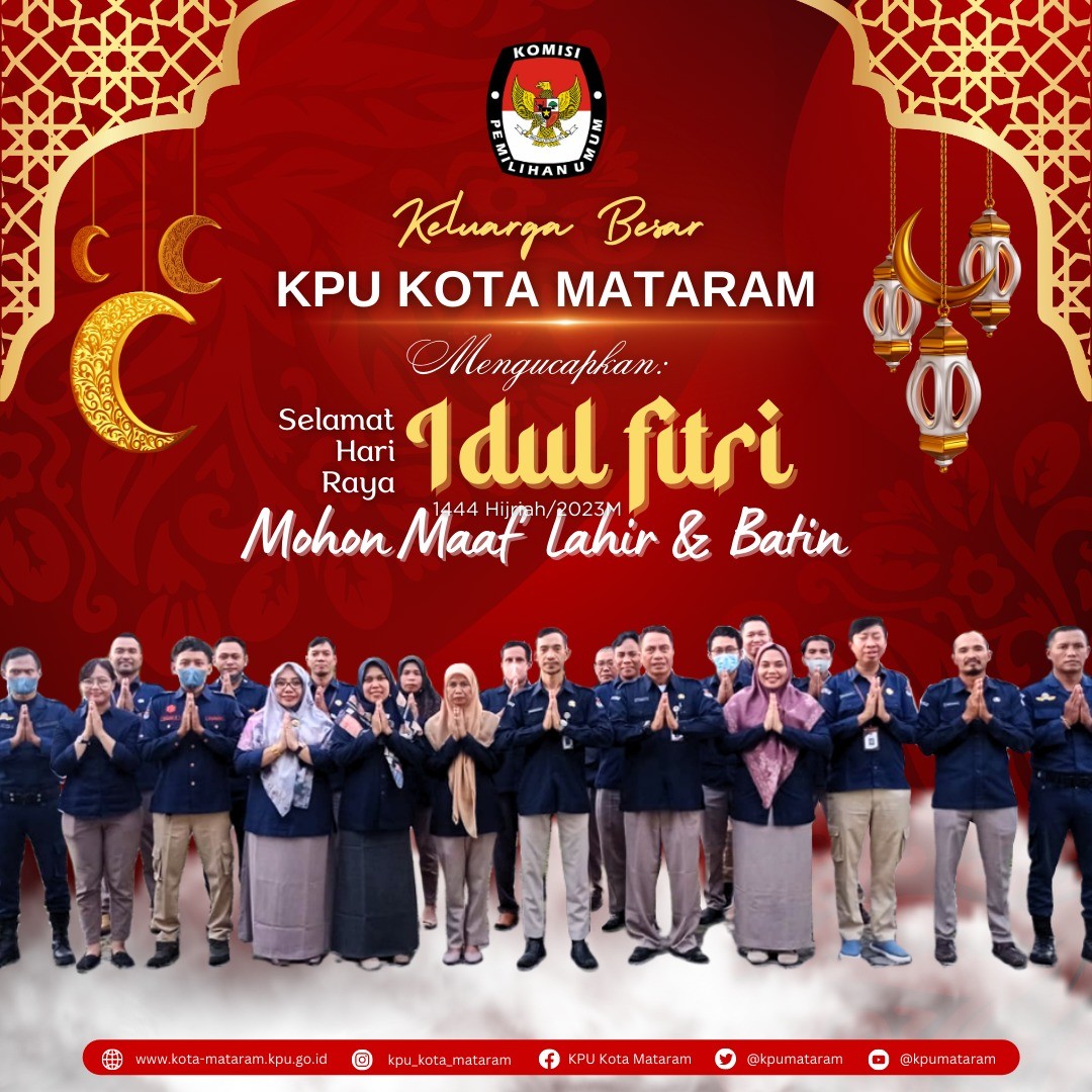 Keluarga Besar KPU Kota Mataram mengucapkan Selamat Lebaran Rabu, 26 April 2023 07:00 955 Selamat Hari Raya Idul Fitri 1444 Hijriyah / 2023 Masehi Baca Selengkapnya
