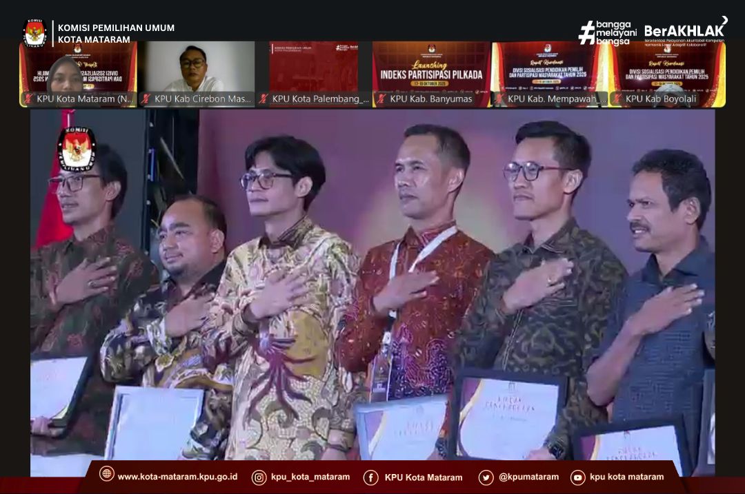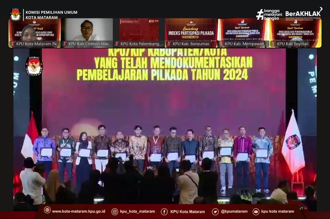 KPU Kota Mataram menerima penghargaan sebagai KPU Kabupaten/Kota yang mendokumentasikan pembelajaran Pilkada 2024