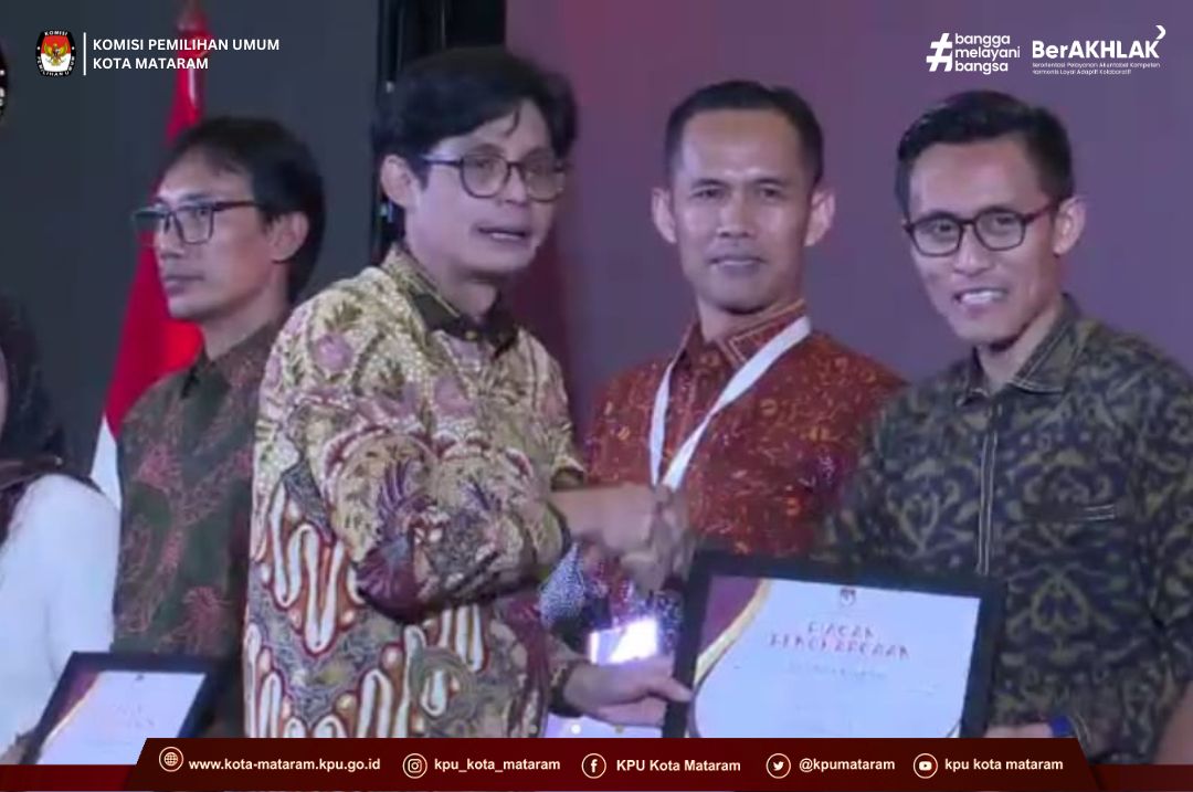 #temanpemilih, (19/10) KPU Kota Mataram menerima penghargaan sebagai KPU KIP Kabupaten/Kota yang telah mendokumentasikan pembelajaran Pilkada 2024.