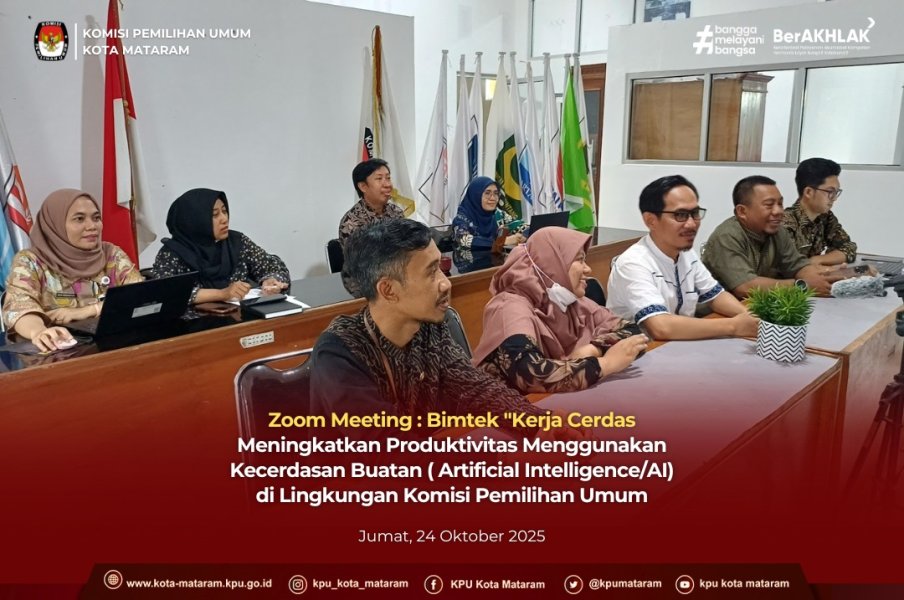 #TemanPemilih, Jum'at (25/10) KPU Kota Mataram mengikuti kegiatan Webinar terkait Integrasi Alur Kerja Menggunakan Kecerdasan Buatan dalam Pemilu, yang diselenggarakan oleh Komisi Pemilihan Umum Republik Indonesia secara Daring, Jumat, 24 oktober 2025.
