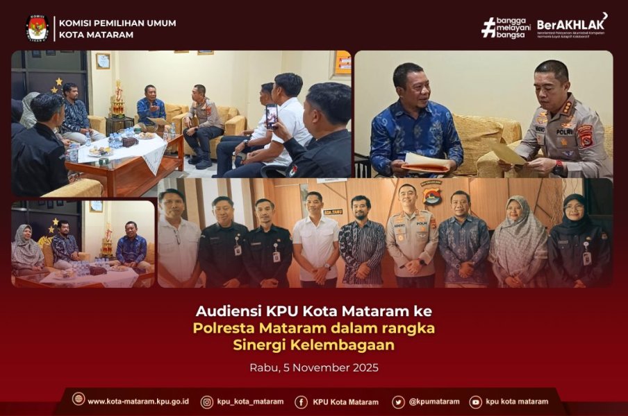 #temanpemilih, (5/11/2025) KPU Kota Mataram telah melaksanakan audiensi dengan Polresta Mataram pada hari Rabu, tanggal 5 November 2025, bertempat di ruang kerja Kapolresta Mataram.