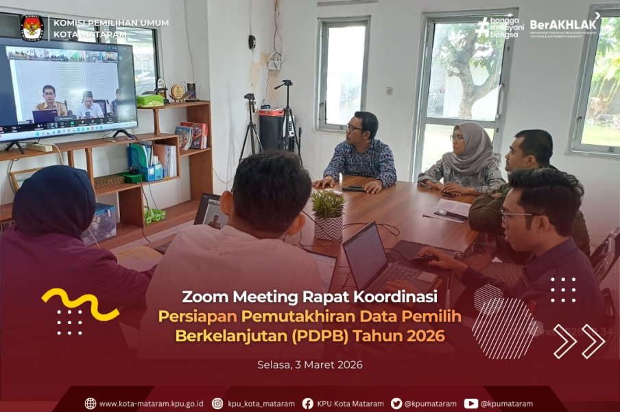 Kegiatan ini dilaksanakan secara daring dan dihadiri oleh Ketua KPU Kota Mataram, Kadiv Teknis, Kadiv Hukum dan Pengawasan, Kasubbag Perdatin, serta operator Sidalih.
