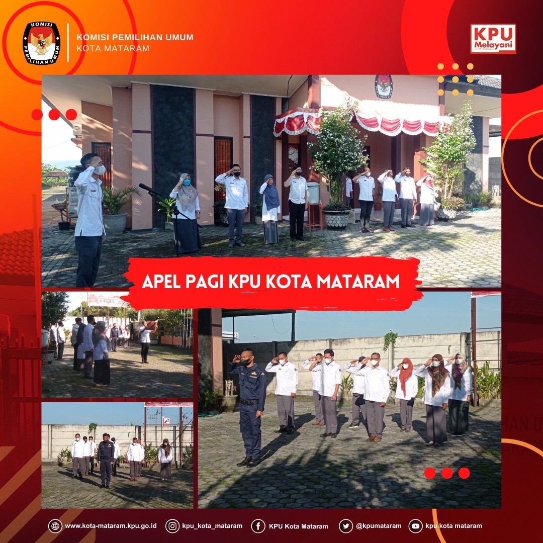 #TemanPemilih, Senin (23/05) Bertempat di Lapangan Kantor KPU Kota Mataram, Lalu Agus Suhardiman memimpin apel pagi yang diikuti oleh seluruh staf Sekretariat KPU Kota Mataram.
