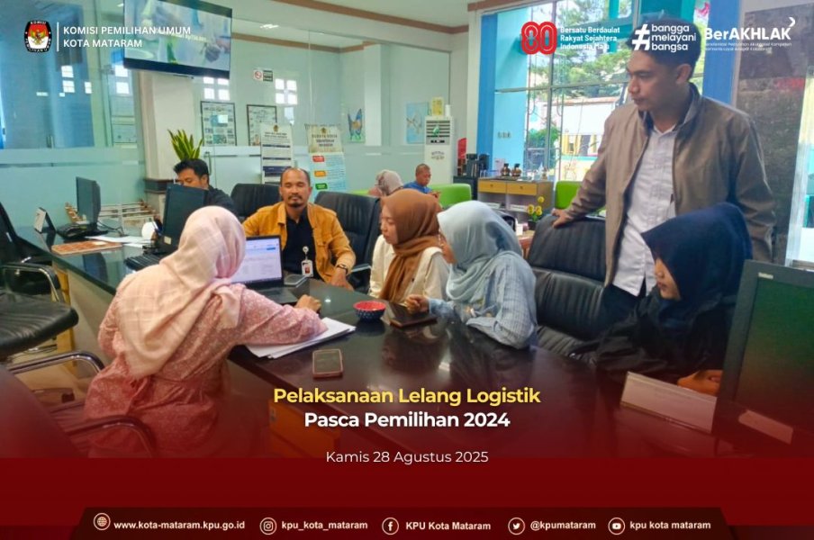 #temanpemilih,(28/8)KPU Kota Mataram melaksanakan lelang logistik pasca Pemilihan 2024 berupa Surat Suara, Surat Suara PSU, Kotak Suara, dan Bilik Suara Pemilihan Gubernur dan Wakil Gubernur serta Walikota dan Wakil Walikota Tahun 2024 melalui Aplikasi Lelang (Open Bidding) di KPKNL Mataram (Kamis, 28/08)
