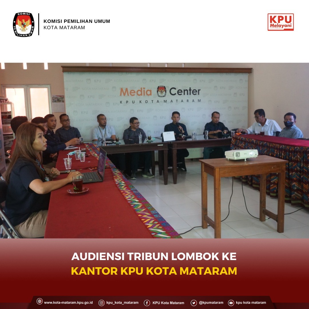 #TemanPemilih, Selasa (21/06) Bertempat di Ruang Media Center, Ketua KPU Kota Mataram, M. Husni Abidin didampingi Anggota KPU Kota Mataram serta Sekretaris dan Kepala Subbagian Teknis Penyelenggaraan Pemilu, Partisipasi dan Humas menerima kedatangan rombongan dari TribunLombok.com.