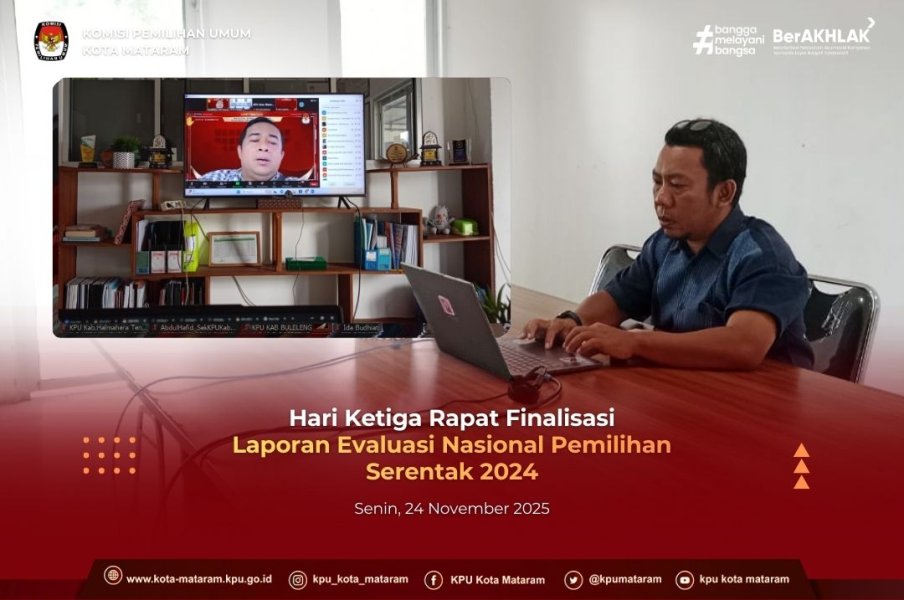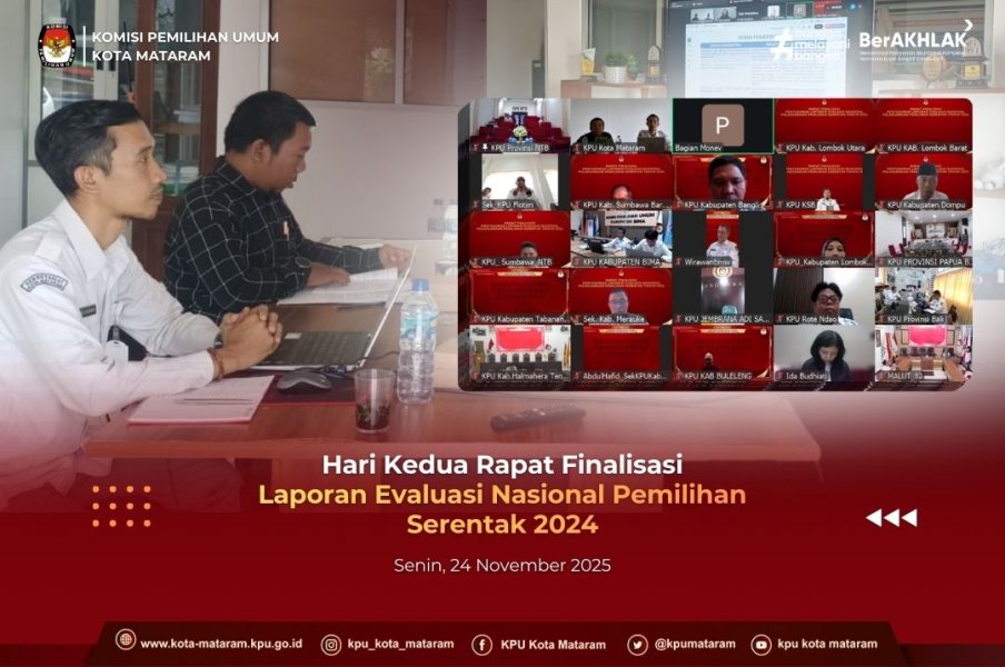 #temanpemilih (25/11/2025) Baru saja berakhir kegiatan Rapat Finalisasi Laporan Evaluasi Nasional Pemilihan Serentak 2024 sukses digelar selama tiga hari dari tanggal 23 hingga 25 November 2025 yang diselenggarakan oleh KPU RI. Acara ini menjadi momentum penting untuk mengevaluasi secara mendalam seluruh tahapan dan pelaksanaan Pemilihan Serentak 2024, mengidentifikasi serta merumuskan rekomendasi perbaikan demi penyelenggaraan Pemilihan Serentak 2024 yang lebih berkualitas di masa mendatang. Dalam rapat ini, Tenaga Ahli KPU dan Tim Pakar membacakan kesimpulan hasil rapat. Kesimpulan tersebut menegaskan bahwa secara umum, tantangan teknis dan administratif yang perlu ditindaklanjuti. Laporan final ini mencakup antara lain penguatan sistem informasi, peningkatan kapasitas sumber daya manusia (SDM) penyelenggara di daerah, dukungan Pemda yang tidak merata dan penyempurnaan regulasi. Seluruh hasil evaluasi ini akan menjadi basis data penting bagi KPU RI untuk menyusun strategi perbaikan kelembagaan. Rapat Finalisasi Laporan Evaluasi Nasional Pemilihan Serentak 2024 resmi ditutup oleh Kepala Biro Perencanaan dan Organisasi KPU RI, M. Syahrizal Iskandar, pada Rabu, 25 November 2025. Dalam sambutannya, beliau mengapresiasi kerja keras Tenaga Ahli KPU, Tim Pakar, KPU Provinsi/KIP Aceh, KPU/KIP Kabupaten/Kota yang terlibat dan menekankan pentingnya menjadikan hasil laporan ini sebagai rekomendasi perbaikan untuk mewujudkan Pemilihan Serentak 2024 yang lebih berkualitas ke depannya. #kpumelayani #kpukotamataram