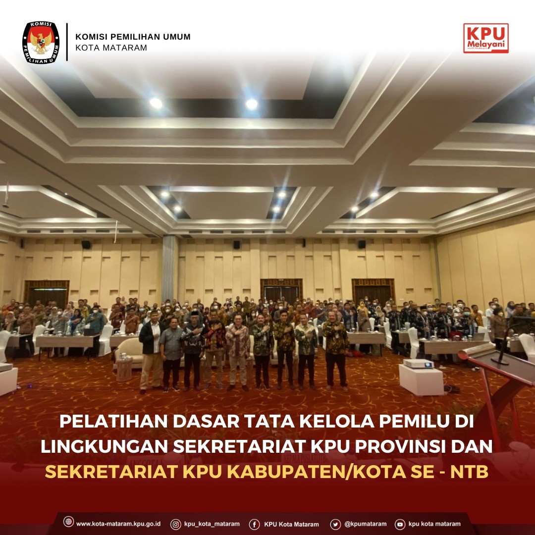 #TemanPemilih, Jum'at (17/06) Lalu Agus Suhardiman, Sekretaris KPU Kota Mataram beserta seluruh PNS di Lingkungan KPU Kota Mataram mengikuti Pelatihan Dasar Tata Kelola Pemilu di Lingkungan Sekretariat KPU Provinsi dan Sekretariat KPU Kabupaten/Kota se Nusa Tenggara Barat, yang diadakan oleh KPU RI di Hotel Merumatta Senggigi Lombok Barat.