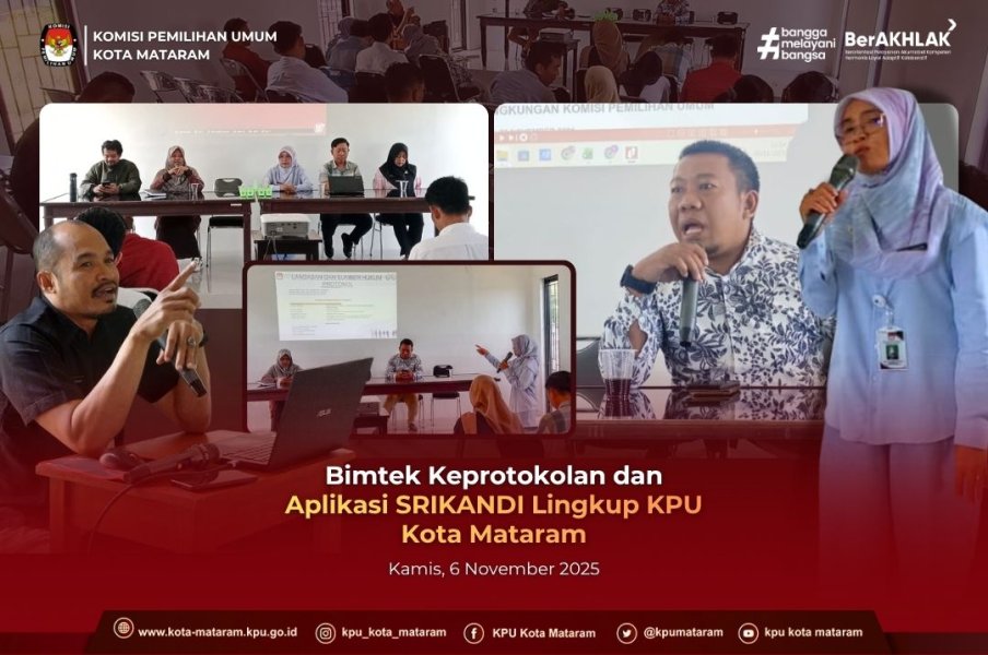 Dalam rangka peningkatan kinerja lembaga serta penerapan Zona Integritas (ZI) di lingkungan kerja, KPU Kota Mataram melaksanakan kegiatan bimtek keprotokolan dan Sosialisasi Aplikasi Srikandi Teman pemilih, Kamis (6/11/2025) kegiatan bimtek keprotokolan dan sosialisasi aplikasi Srikandi ini dilaksanakan sebagai tindaklanjut dari pelaksanaan tugas harian serta peningkatan kapasitas pelayanan fasilitasi pimpinan di lingkungan sekretariat KPU Kota Mataram . Dalam pembukaan kegiatan, Ibu Dwi Ratnasari Yulianingsih S selaku Divisi Perencanaan Data & Informasi, menyampaikan bahwa pentingnya kegiatan ini sebagai Sharing Knowledge dari setiap subagian di KPU Kota Mataram karena KPU Kota Mataram hadir, bekerja dan terus belajar untuk pelayanan yang lebih baik, bukan hanya sebagai bahan pemenuhan eviden ZI semata. Selanjutnya Bapak Edy Putrawan selaku Ketua KPU Kota Mataram menyampaikan bahwa keprotokolan adalah etika/adat dalam kedinasan, dan arsip itu penting, agar kita tidak kehilangan sejarah. Kegiatan dilanjutkan dengan paparan materi serta praktik langsung terkait keprotokolan dan aplikasi Srikandi oleh Roisatul Aminy selaku Kasubag KUL dan didampingi oleh Bapak Raswan dan Baiq Dewi Ratnawati selaku staf pelaksana. Peserta kegiatan sosialisasi ini adalah anggota KPU Kota Mataram beserta seluruh jajaran sekretariat KPU Kota Mataram. #kpukotamataram #kpumelayani