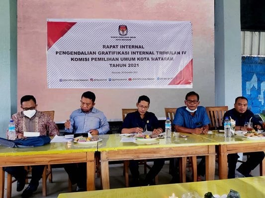 #TemanPemilih Pada Hari Selasa 28 Desember 2021 Tim Jaringan Dokumentasi dan Informasi Hukum Komisi Pemilihan Umum Kota Mataram melaksanakan Rapat Internal Pengendalian Gratifikasi Internal Triwulan IV di lingkungan Komisi Pemilihan Umum Kota Mataram Tahun 2021. Acara ini dihadiri oleh dipandu oleh Ketua dan seluruh Anggota Komisi Pemilihan Umum Kota Mataram, yang dihadiri oleh jajaran Sekretariat Komisi Pemilihan Umum Kota Mataram. Bertempat di Lesehan Taliwang Tiga-Tiga, Ketua Komisi Pemilihan Umum Kota Mataram menyampaikan arahan untuk bersinergi dalam menyelesaikan tugas-tugas, terlebih ketika Tahapan Pemilihan Umum Tahun 2024 mulai. Pada kesempatan tersebut, Ketua Divisi Sosialisasi, Pendidikan Pemilih, Partisipasi Masyarakat, dan Sumber Daya Manusia, Sopan Sopian Hadi, S.E., M.M. menyampaikan perlunya membuat video-video himbauan tentang pengendalian gratifikasi di lingkungan Komisi Pemilihan Umum Kota Mataram, kemudian Ketua Divisi Hukum dan Pengawasan, I Ketut Swena, S.H. membahas mengenai potensi gratifikasi dan langkah-langkah menangani hal tersebut. Menindaklanjuti potensi-potensi gratifikasi, jajaran Tim Penanganan Gratifikasi di Komisi Pemilihan Umum Kota Mataram telah melaksanakan Standard Operational Procedure sesuai yang ditetapkan oleh Komisi Pemberantasan Korupsi sejak Tahun 2021, sebagaimana disampaikan oleh Tim Penanganan Gratifikasi, Komisi Pemilihan Umum Kota Mataram ikut serta dalam menggunakan aplikasi Gratifikasi On-Line (GOL) dan membuka layanan pelaporan baik secara daring maupun luring. Diharapkan, melalui rapat internal tersebut, kinerja jajaran Sekretariat Komisi Pemilihan Umum Kota Mataram akan meningkat, dan dapat memberikan pelayanan prima kepada masyarakat dan para pemangku kepentingan, sesuai semboyan #KPUMelayani