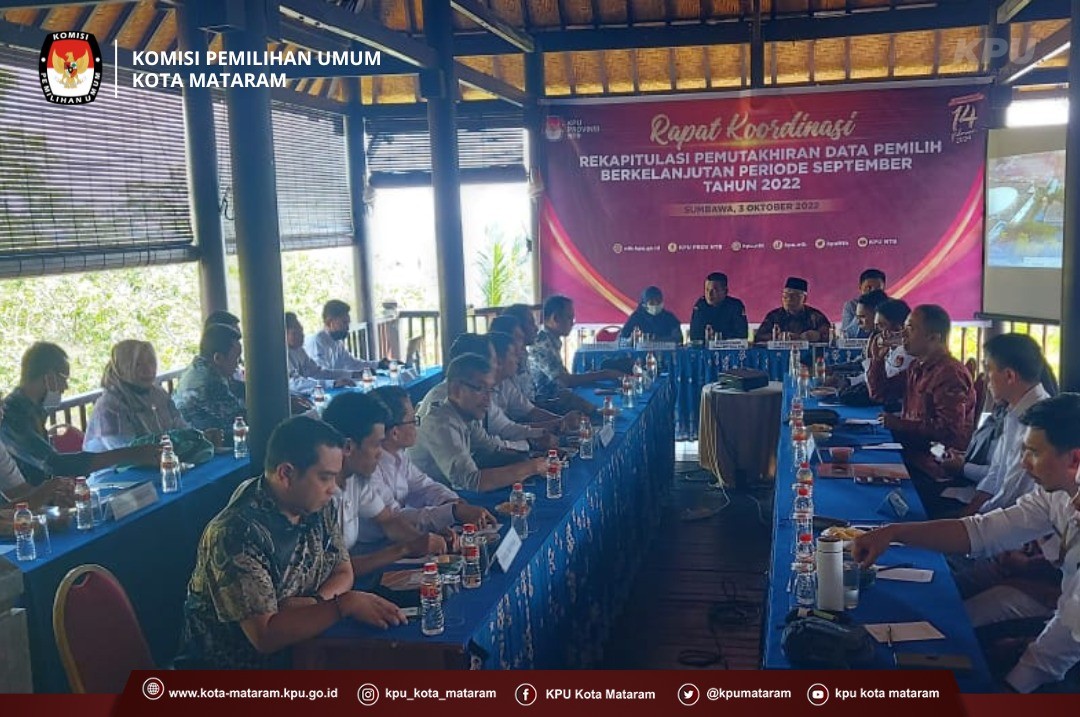 Komisi Pemilihan Umum (KPU) Kota Mataram mengikuti Sosialisasi Juknis Anggaran dan Pengelolaan Keuangan, Kamis, (8/09/2022). Kegiatan sosialisasi dilaksanakan oleh KPU Provinsi Nusa Tenggara Barat dengan mengundang seluruh satuan kerja KPU Kabupaten/Kota Se-Nusa Tenggara Barat. Masing-masing KPU Kabupaten/Kota mengirimkan lima (5) peserta, dari KPU Kota Mataram yakni Anggota KPU Divisi Perencanaan, Data dan Informasi (Edy Putrawan), Sekretaris (Lalu Agus Suhardiman), Kasubbag Perencanaan, Data dan Informasi (Tanti Ujianti Hamim), Kasubbag Keuangan, Umum dan Logistik (Fitriana Anwar) serta Bendahara Pengeluaran (B. Sigit Widada).