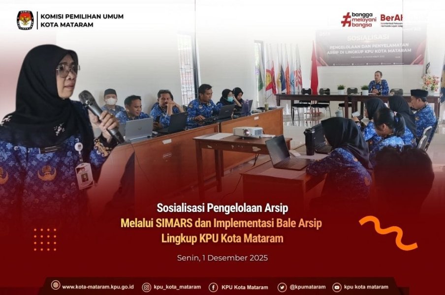 #temanpemilih, (01/12) Dalam upaya konsistensi tata kelola arsip dan memastikan setiap dokumen tersimpan secara tertib dan aman, KPU Kota Mataram kembali melaksanakan kegiatan Sosialisasi Pengelolaan Arsip dan Implementasi Bale Arsip dengan peserta kegiatan seluruh sekretariat lingkup KPU Kota Mataram. Dalam pembukaan kegiatan, Sekretaris kPU Kota Mataram Bapak lalu Agus Suhardiman menekankan agar seluruh subbagian terlibat aktif dalam pengelolaan arsip di lingkup KPU Kota Mataram. Selanjutnya penjelasan teknis terkait pengelolaan arsip disampaikan oleh Ibu Roisatul Aminy selaku Kepala Subbagian Keuangan, Umum dan Logistik bersama operator arsip. Secara teknis, pengelolaan arsip meliputi pemberkasan arsip aktif dan inaktif baik dalam format manual maupun elektronik melalui SIMARS (Sistem Informasi Manajemen Arsip). SIMARS merupakan aplikasi yang dikembangkan oleh KPU Provinsi NTB dan diimplementasikan dalam pengelolaan arsip pada seluruh KPU Kabupaten/Kota se NTB. Pengisian template arsip dalam SIMARS telah menjelaskan bagaimana arsip itu mulai tercipta atau tahap awal dokumen dihasilkan dengan memberikan identitas awal sampai dengan proses penggunaan dan pemeliharaan yang meliputi klasifikasi arsip, penataan fisik atau digital arsip, keamanan dan hak akses arsip, sampai dengan nasib akhir arsip sesuai kaidah atau peraturan yang berlaku. Dalam rangka peningkatan kapasitas layanan digital kearsipan, KPU Kota Mataram mengembangkan sebuah Aplikasi Bale Arsip yang berfungsi sebagai alat bantu penyimpanan dokumen digital yang diciptakan oleh masing masing Unit Pengolah lingkup KPU Kota Mataram. Secara tidak langsung Bale Arsip juga terintegrasi dalam pengumpulan dokumen yang harus diisi dalam template laporan arsip pada SIMARS. Kegiatan ditutup dengan komitmen bersama seluruh Unit Pengolah untuk menyampaikan laporan arsip secara berkala ke Unit Kearsipan III (KPU Kota Mataram) untuk selanjutnya diteruskan ke Unit Kearsipan II (KPU Provinsi NTB), baik dalam bentuk hard maupun digital serta masing masing Unit pengolah berkewajiban menyimpan dokumen yang telah diciptakan ke Bale Arsip. #kpumelayani #kpukotamataram
