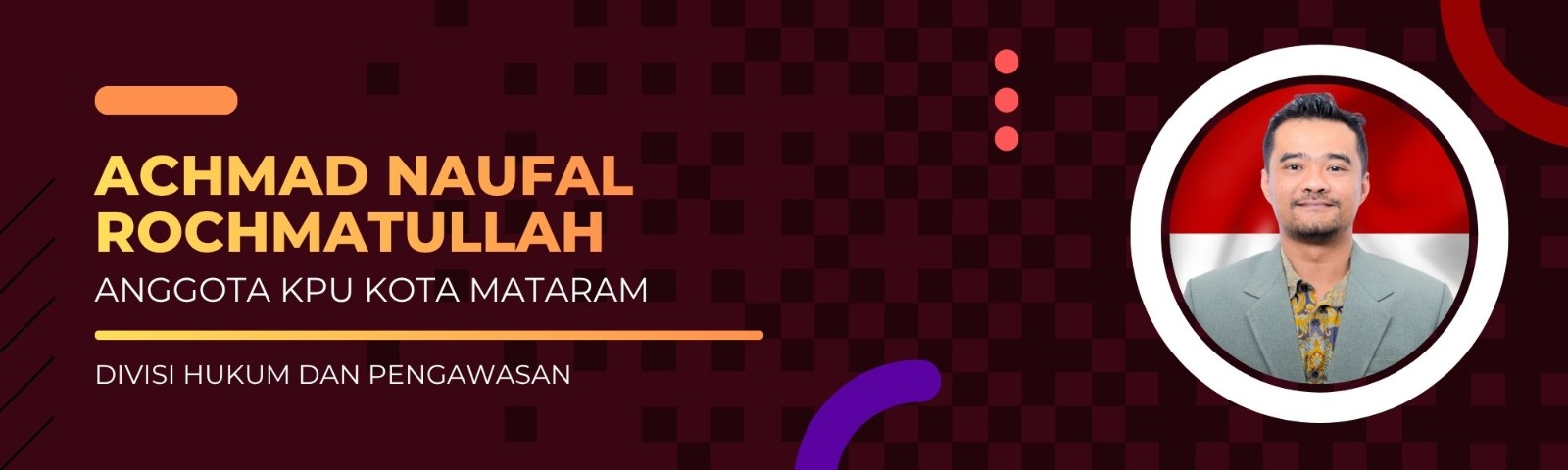 Biodata Diri : Achmad Naufal Rochmatulloh lahir di Kota Mataram tahun 1990 Saat ini menjabat sebagai Ketua Divisi Hukum KPU Kota Mataram. Sebelumnya pria yang akrab disapa Naufal ini merupakan Ketua Panitia Pemilihan Kecamatan (PPK) Sekarbela tahun 2023.